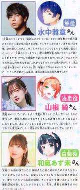 The seiyuu are Mizunaka Masaaki, Yamane Aya (»³º¬åº), Waki Azumi (ÏÂÝæ¤¢¤ºÌ¤), Aoki Ruriko (ÀÄÌÚÎÜÍþ»Ò), Seto Asami (À¥¸ÍË㺻Èþ), Suzushiro Sayumi (ÎëÂå¼ÓµÝ).
