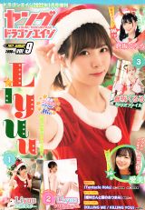 Liyuu (リーユウ) is on the cover of Young Dragon Age Vol.9. There is also a small photo of Terakawa Aimi (寺川愛美) on the front cover. There is a 16 page photo collection of Liyuu at the beginning of the magazine, and a 16 page photo collection of Aimi in the middle. The theme of Liyuu's photos was "Happy Christmas". Liyuu is wearing 3 different outfits, a santa outfit, a white outfit, and a beige "see through" dress.