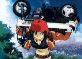 Natsumi went through a shrine, up and down some stairs, along sidewalks, and other illegal places, as she tried to get away from the police car that was after her. She even picked up her motorcycle over her head to try to get away from the patrol car.